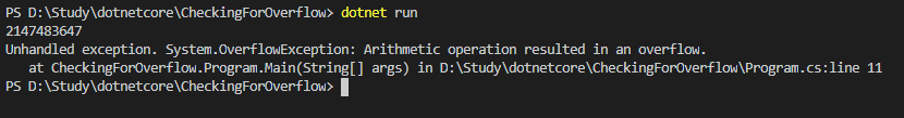 산술 오버플로가 났을 경우 예외를 발생 시켜 준다. msdn에는 이렇게 정의 되어 있습니다.