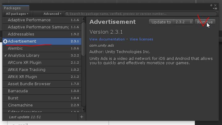 제가 개발하면서 사용한 asset의 문제가 아니였고 packages 에 추가 되었던 advetisement 이놈이 범인 이였습니다.
