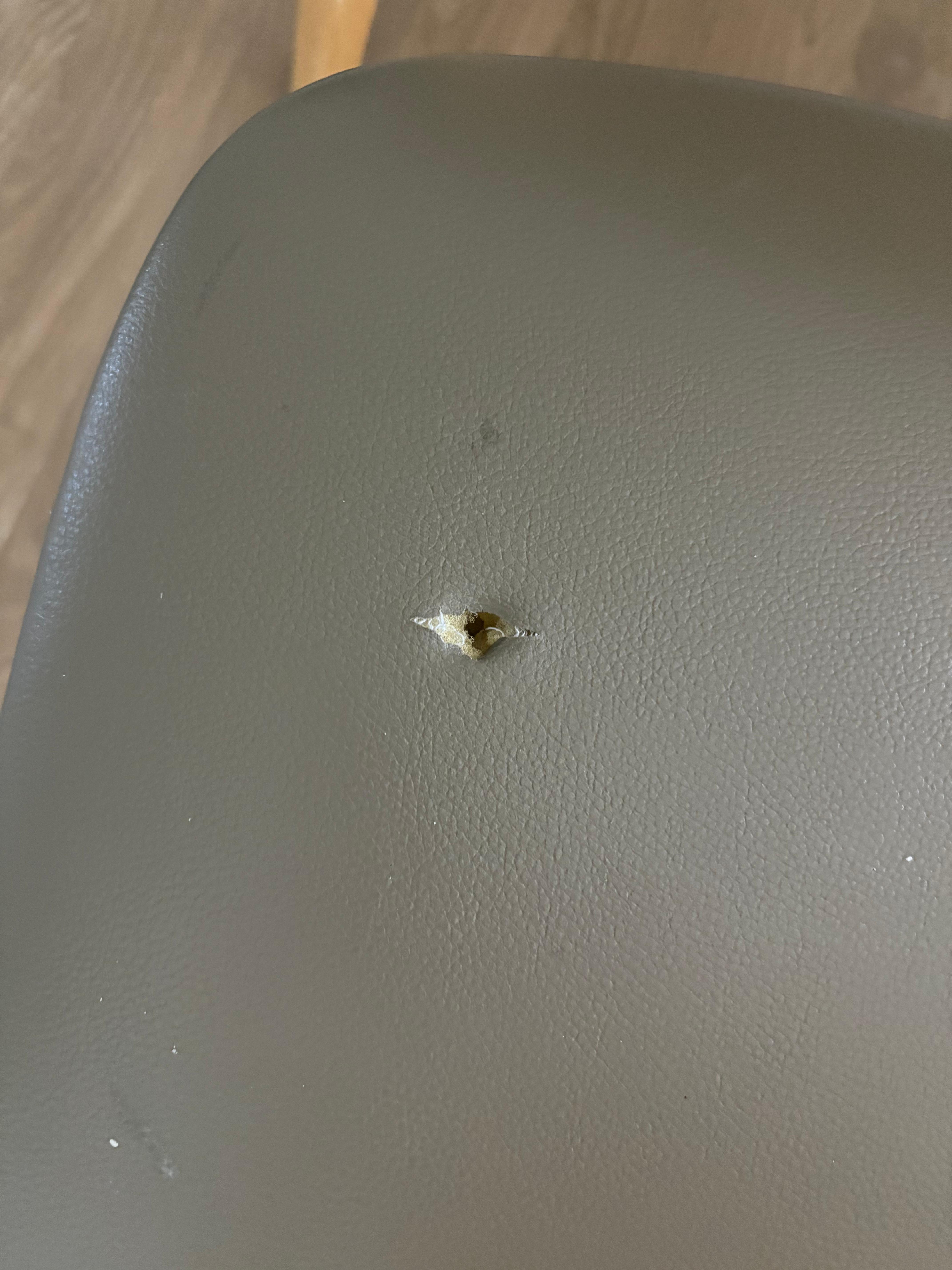 의자 중 하나는 나사가 튀어나온 상태로 장기간 있다 보니 해당 부위가 많이 상하게 되었습니다.