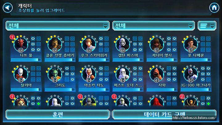 제가 가지고 있는 케릭터들의 목록 이고요.